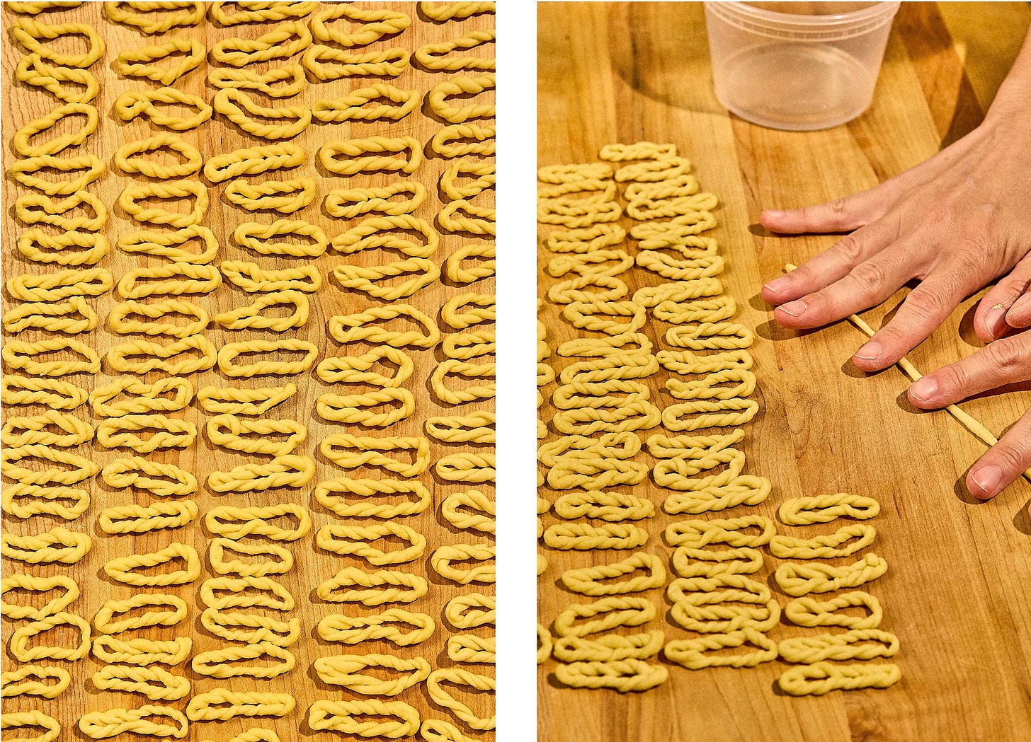 I love making fresh pasta — pici, tagliatelle, cavatelli, agnolotti — the list goes on. Lorighittas, though? I wouldn’t really say they’re beginner-friendly. They’re slow, detailed, and a bit tedious to make. But SO well worth it! Possibly my new favorite. The texture and shape is perfection.